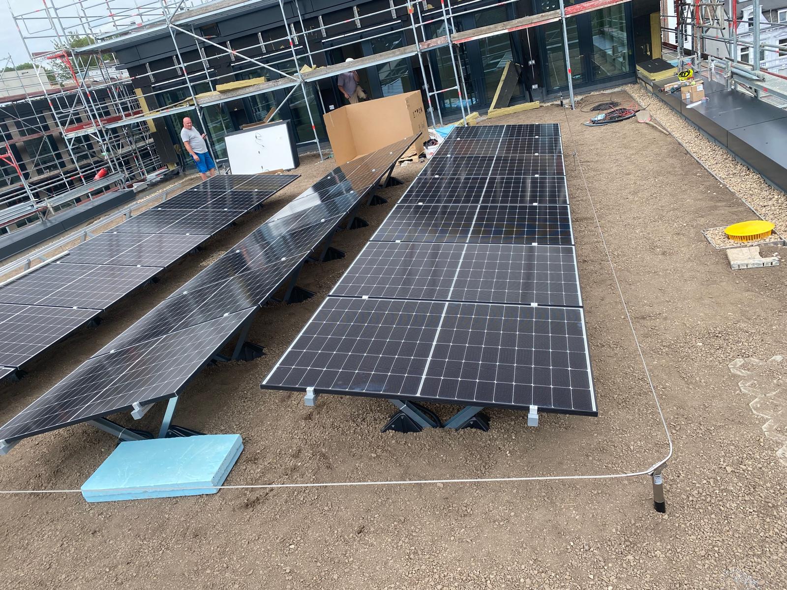 Na projekte sme realizovali kompletné fotovoltické systémy na kľúč v rámci viacerých strešných inštalácií. Súčasťou realizácie bola montáž nosných konštrukcií, osadenie fotovoltických panelov, zapojenie DC a AC časti systému a kompletné elektroinštalačné práce.